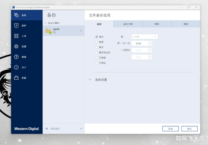 而WD专用的Acronis True Image备份软件,更是数据保护的“利器”。它支持灵活的备份策略设置,可自由选择需要备份的文件夹、文件类型,自定义备份路径,还能设置定时自动备份。小时、每日、每周、每月均可选择,也能按需手动触发,甚至可以创建多个独立备份任务,针对不同项目分别管理,互不干扰。